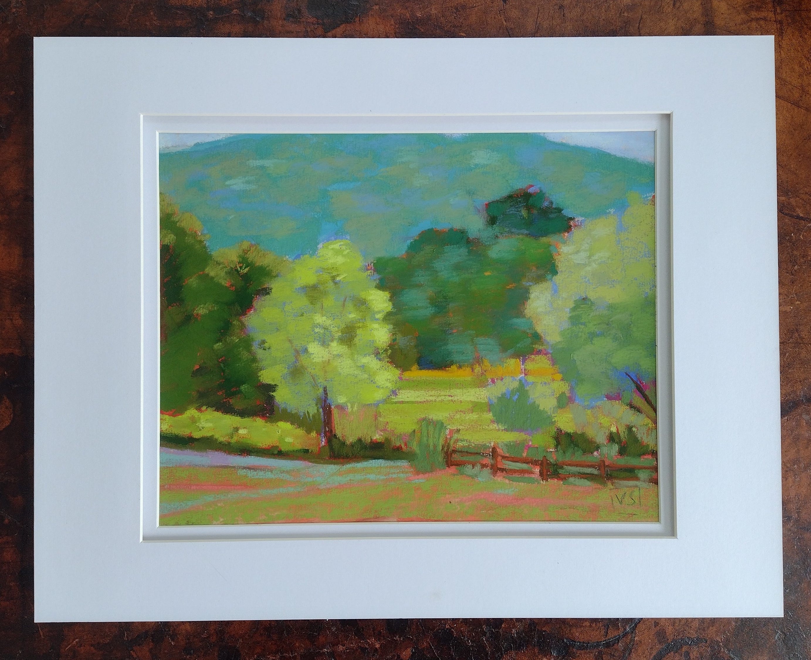 This piece was done on a blisteringly hot day in July when I seemed to have the entire park to myself. The scene pictured is actually across the road from the park. Just to the right is Casey’s Equestrian Center where I could hear the instructor calling out a steady stream of instructions to her pint-sized students during their riding lessons. Directly behind the fence is Von Thun Farm, a destination that fits the Oxford dictionary definition of “agritainment” or “...farm-based entertainment” with its hay rides, pumpkin picking, and corn maze. They also have a sunflower field for Instagram- ready photos and bushes for berry picking in the summer. I was surprised when my husband brought home a pint of blackberries in late September as the wild blackberries are ripe in July. He thought I would use them for berry muesli, but they were calling out to be eaten before they even went in the fridge.