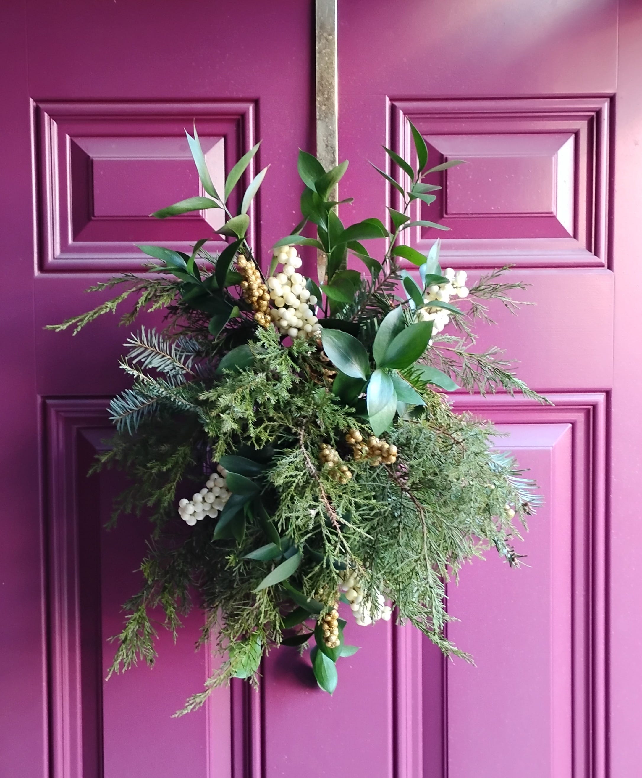 Thank you to all the posts on IG that showed me how easy it is to poke holes in a potato and insert them with Christmas greenery to make my own door arrangement!